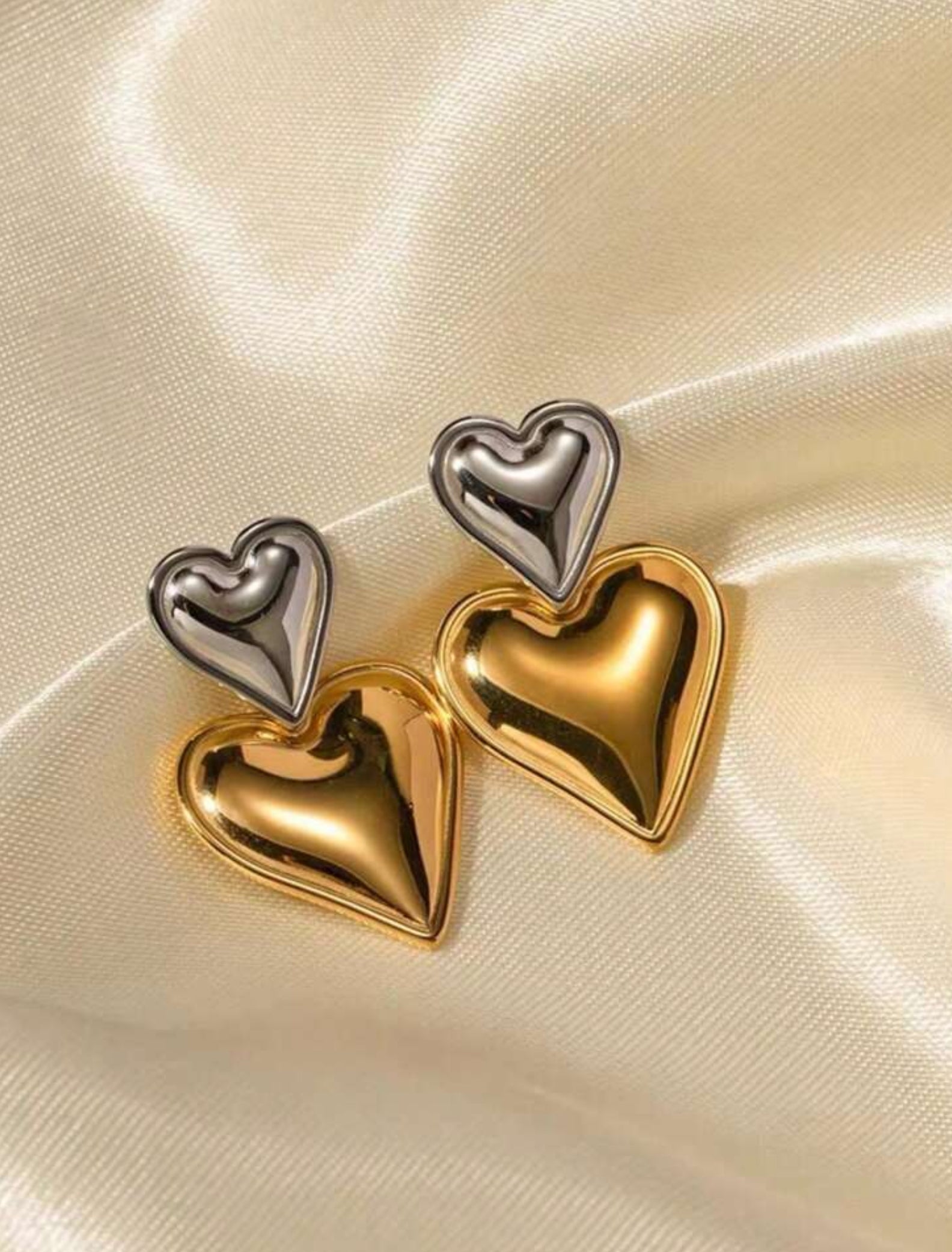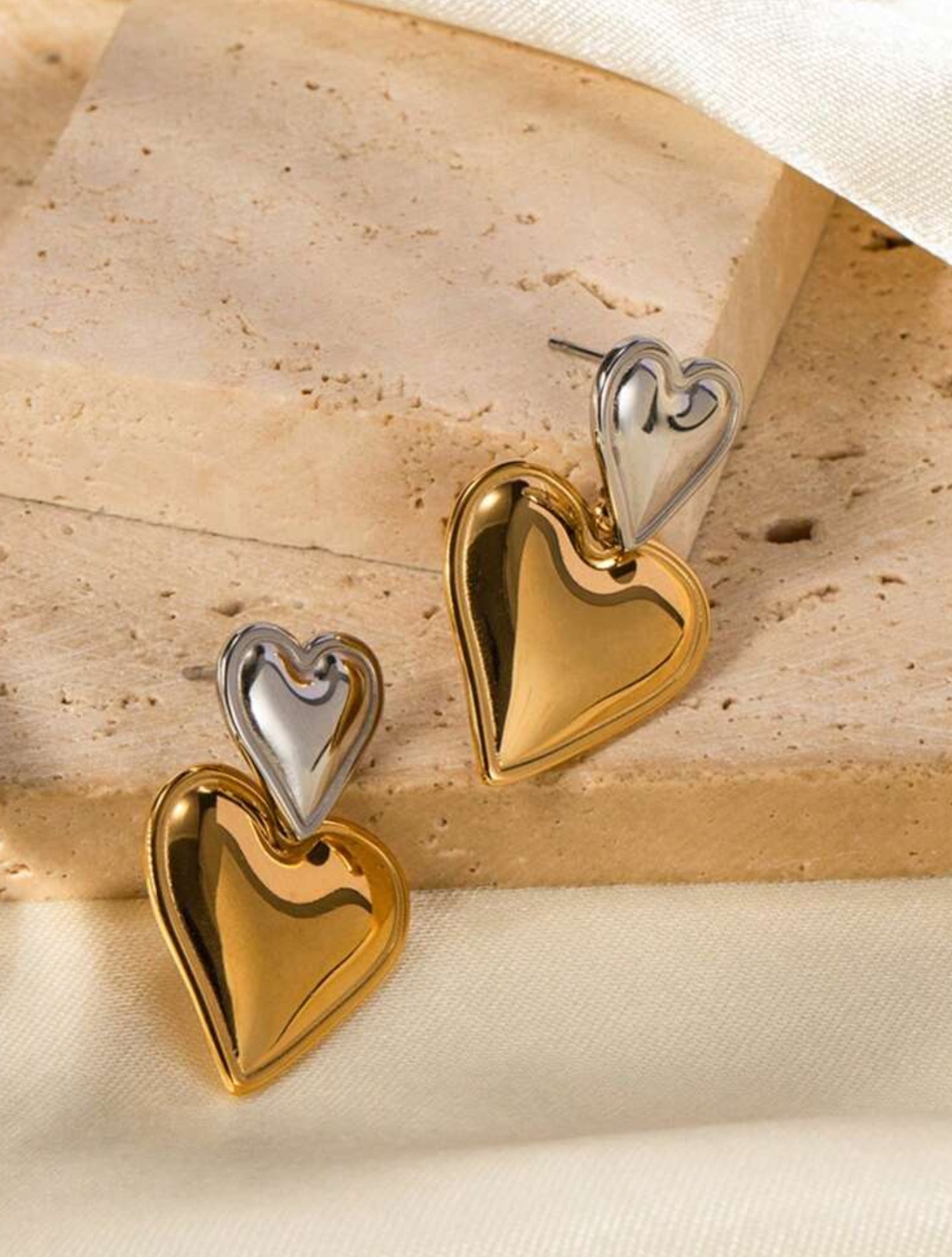 Double Heart Shaped Pendant Earrings.Fashionable Earrings.