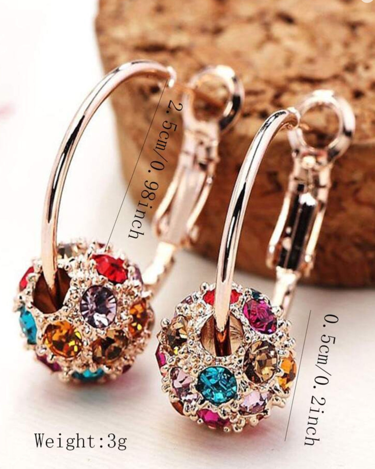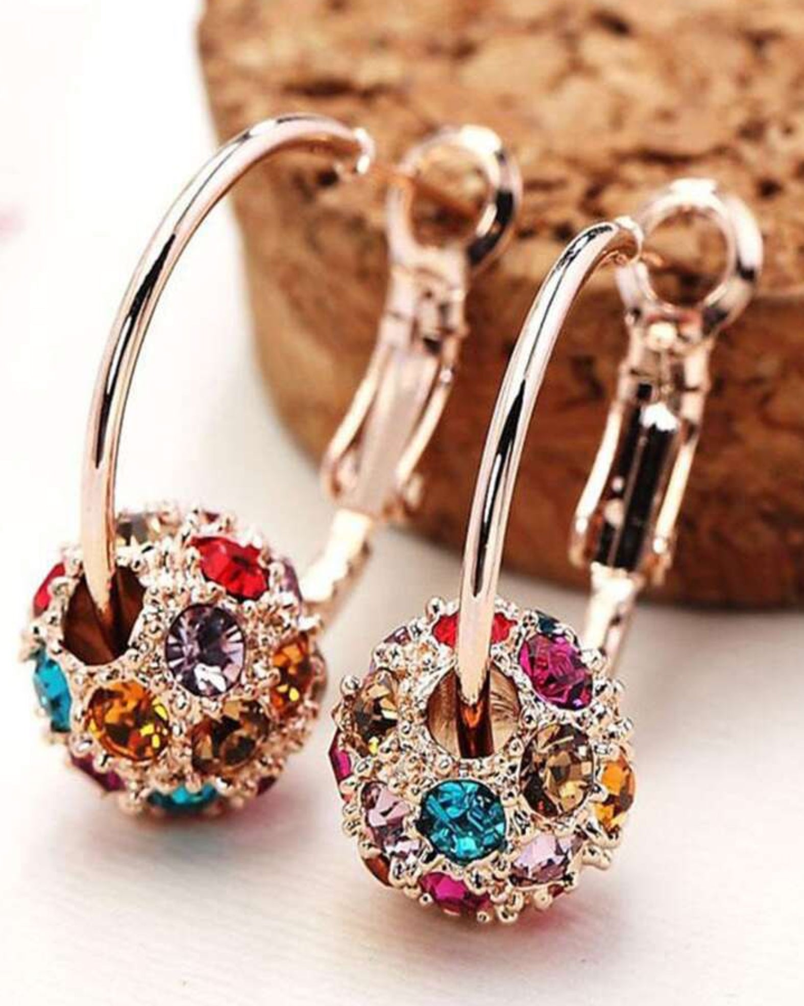 1 Pair Of Women's Multi-color Full Diamond Ball Earrings.