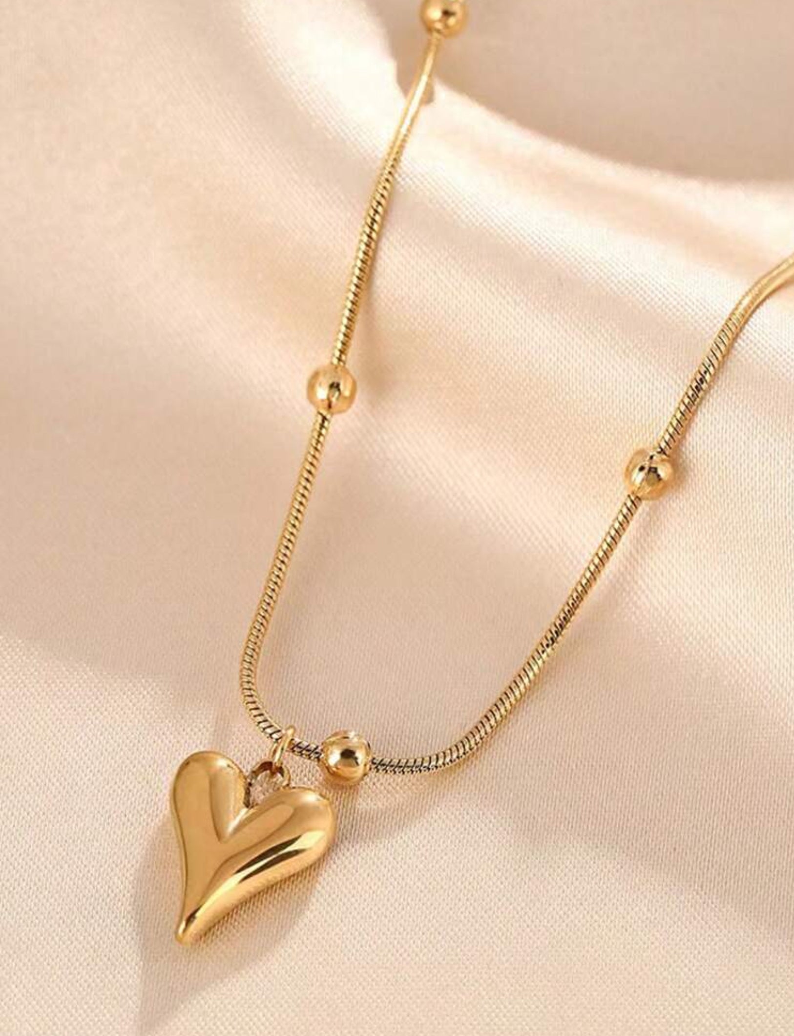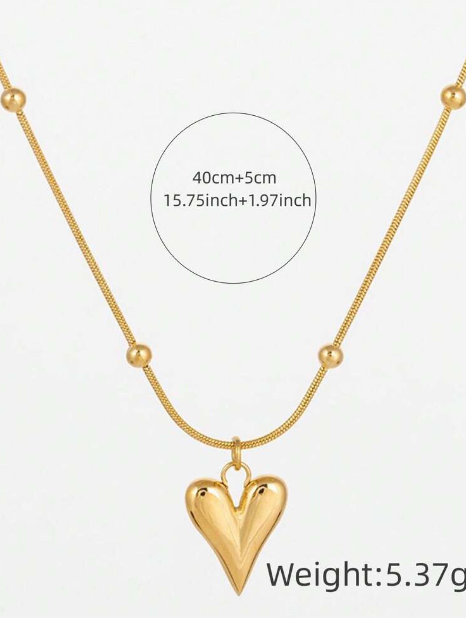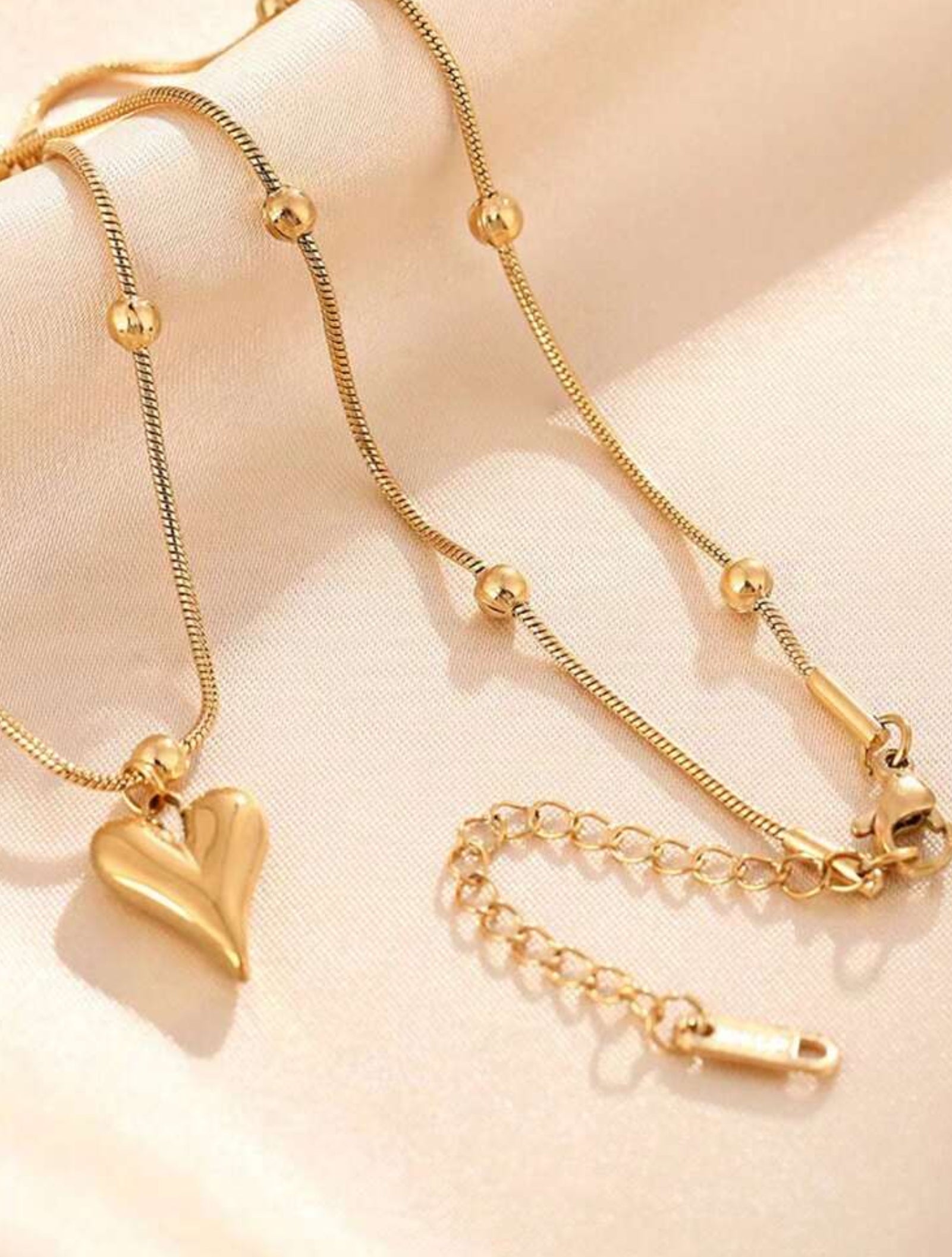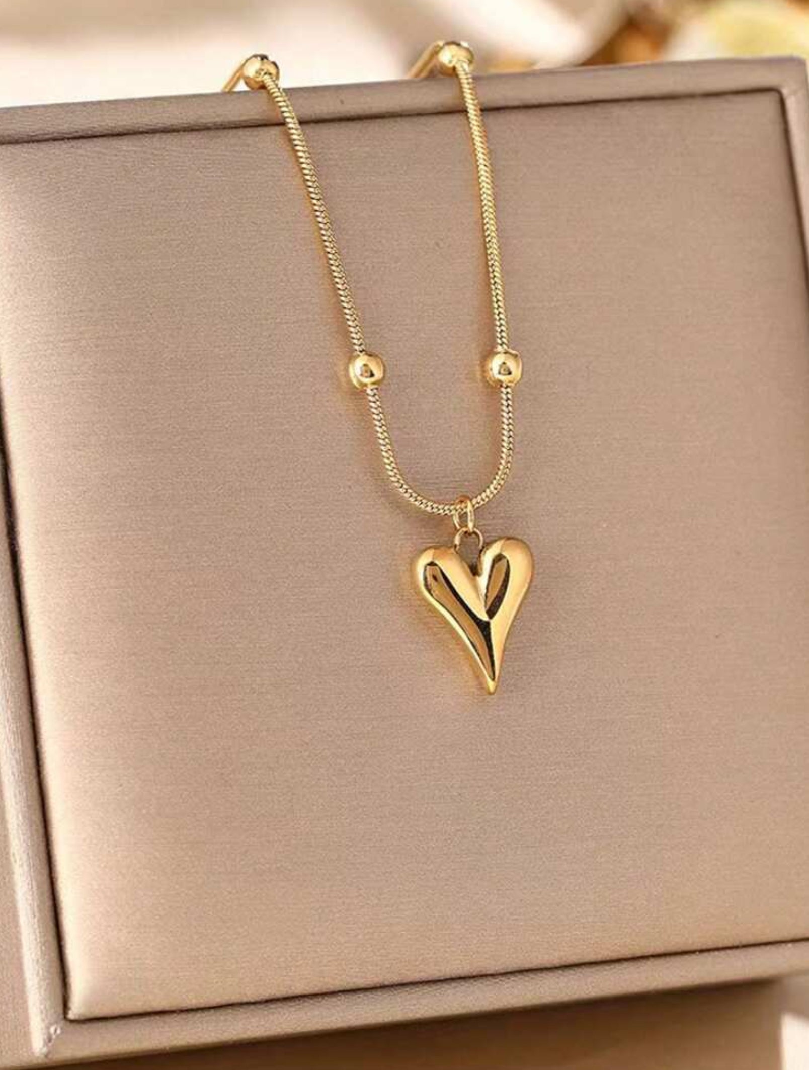Elegant Heart Shaped Pendant 18k Gold Plated Stainless Steel Necklace.